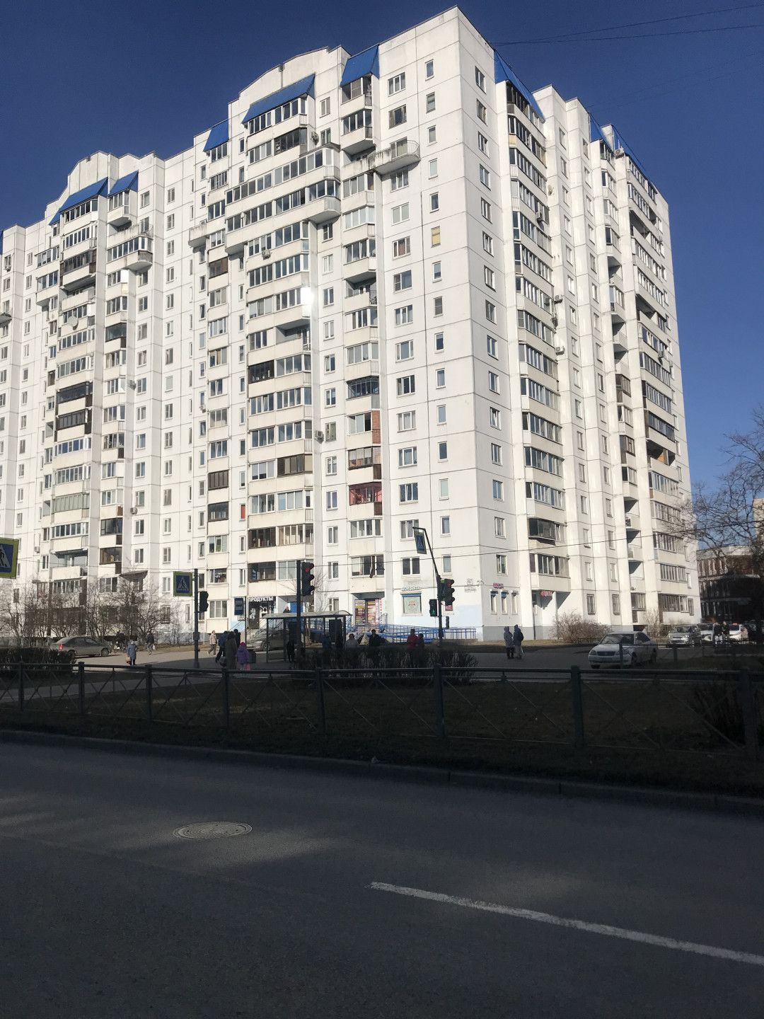 Остановка общественного транспорта около дома, до метро ст. Комендантский проспект -8-10 минут, до ст. Пионерская 15 минут.
