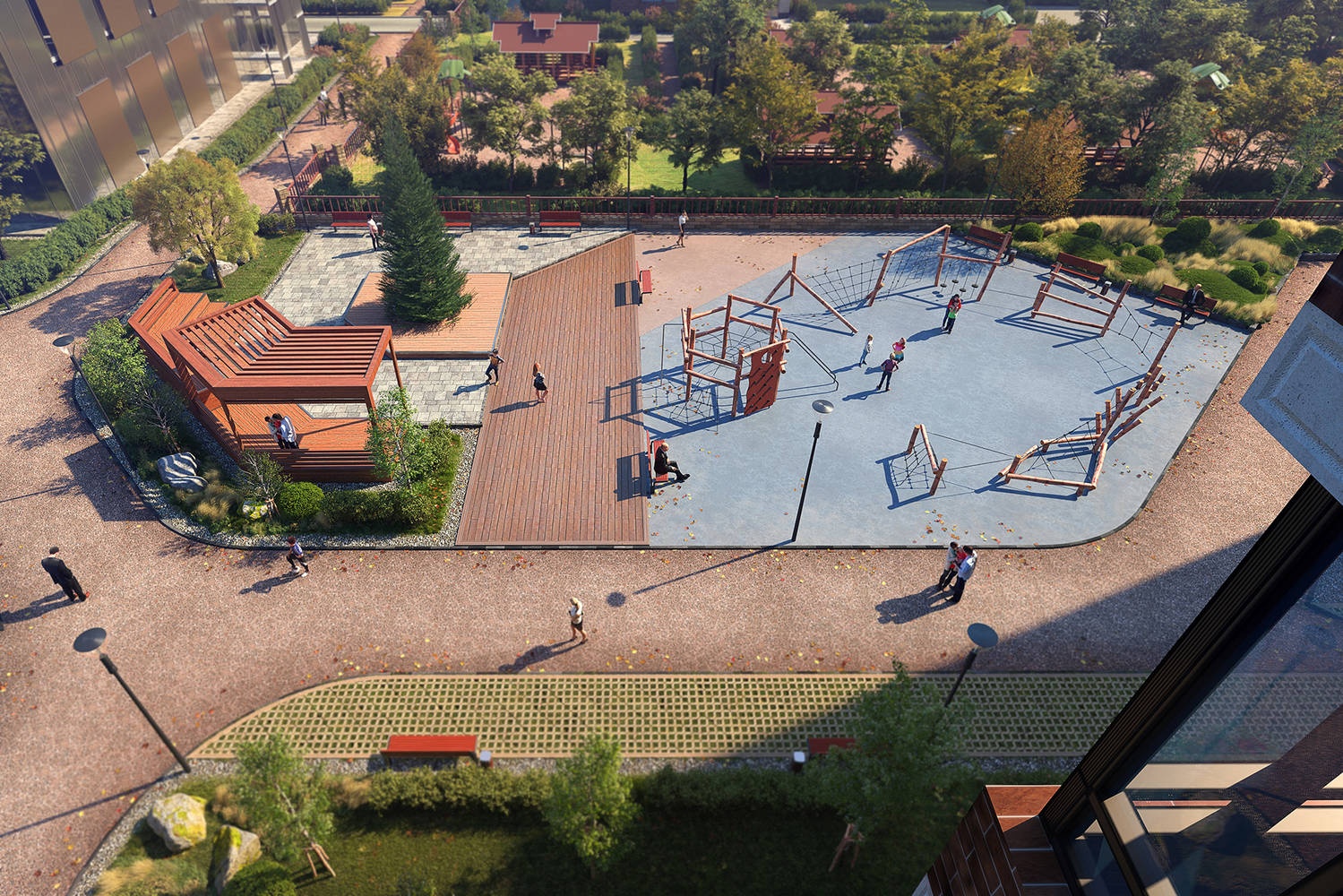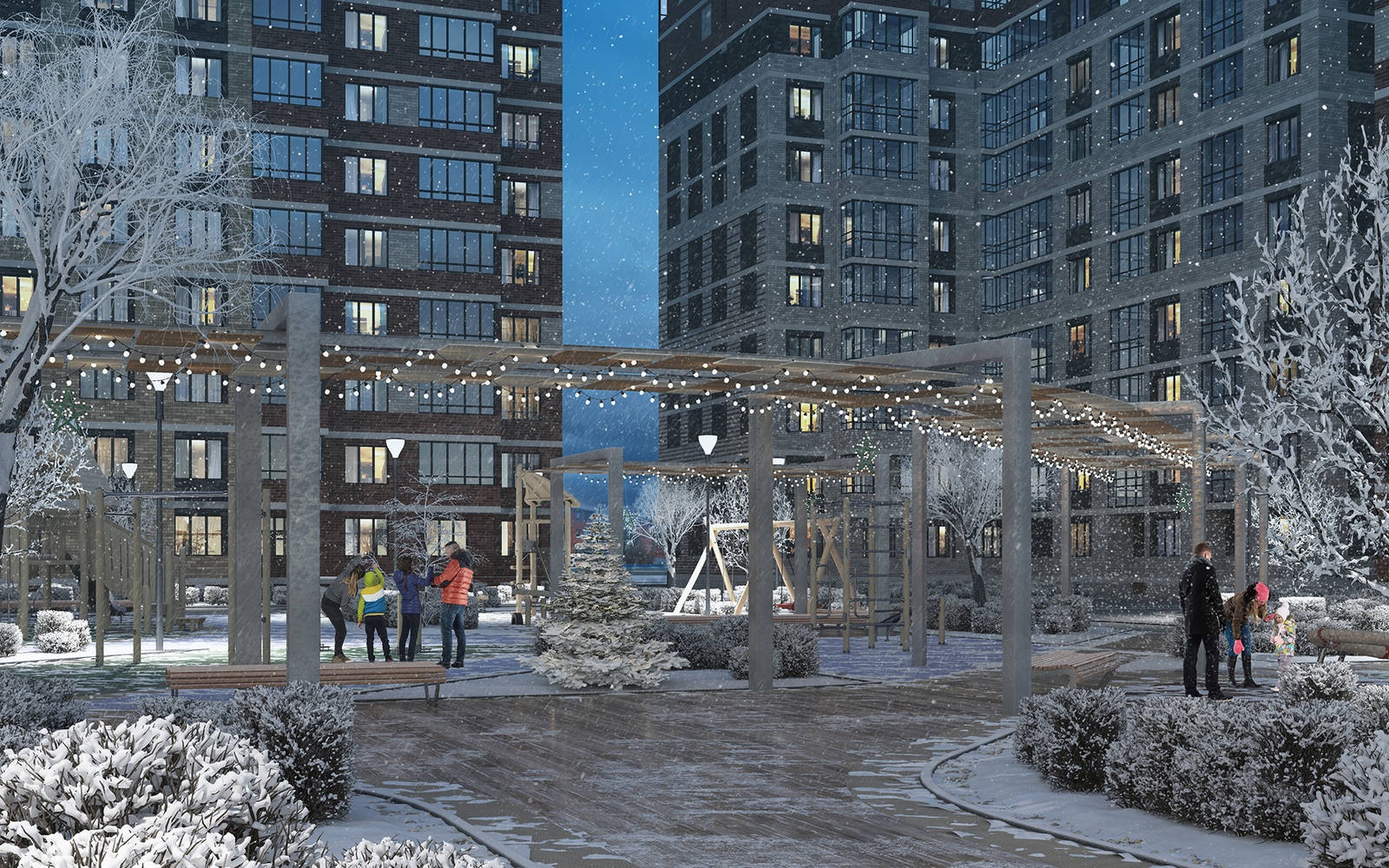 На территории комплекса предусмотрены два детских сада, в которых будет все необходимое для гармоничного развития малышей: физкультурные площадки, залы для музыкальных и гимнастических занятий, медицинский кабинет, спальни, учебные комнаты и др. Во дворе вашего нового дома будут расположены детские площадки с безопасным покрытием.